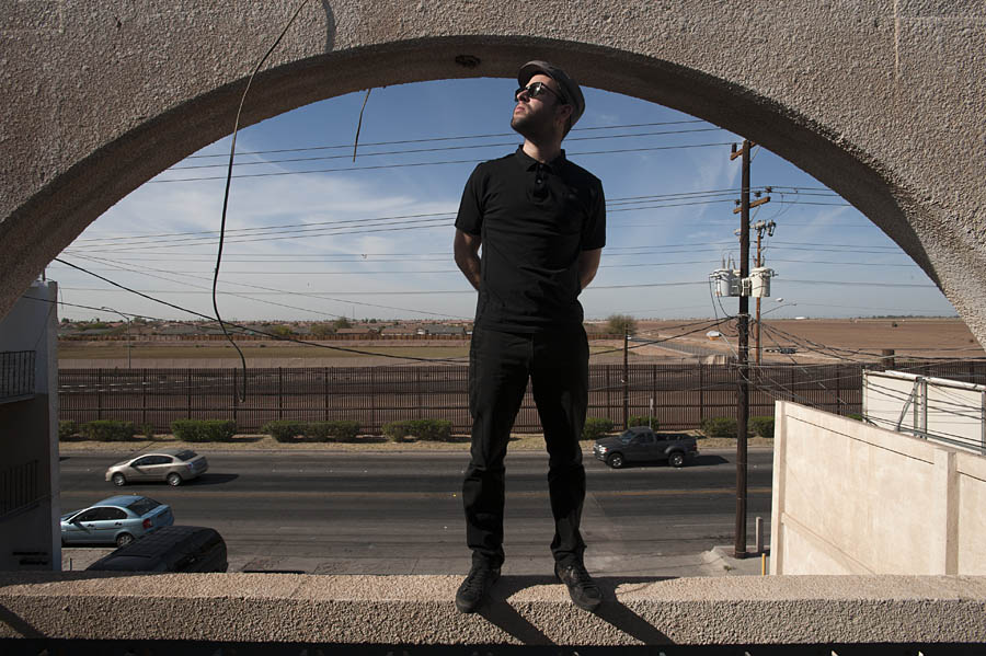 At the border fence in Mexicali; from left to right: Daniel Rosas, director of El Field, a documentary film about Mexican migrant workers working in Californian fields; Alejandro Davila, producer; Derrick Sparrow, co-writer, co-editor, sound;