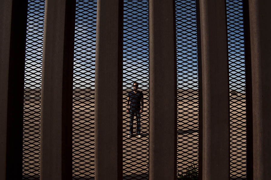 In this picture Rosas and Sparrow are at the border fence in Mexicali directly across the street of their office; Alejandro Davilla lives in Calexico and stands on the American side of the border. Calexico, Mexicali, Mexico. http://www.bodegamxli.com/search/label/Documental