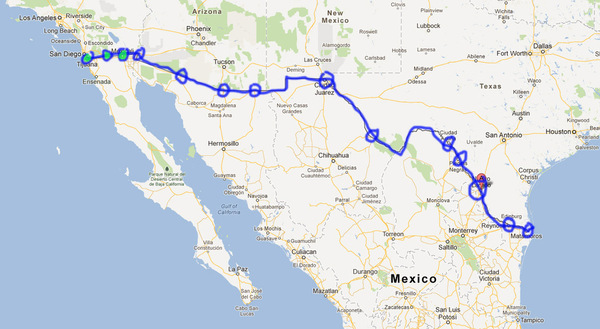 A rough outline of my next travel along the 2000 miles (ca 3200 km) long US Mexican border for my La Frontera Project ( see about ).