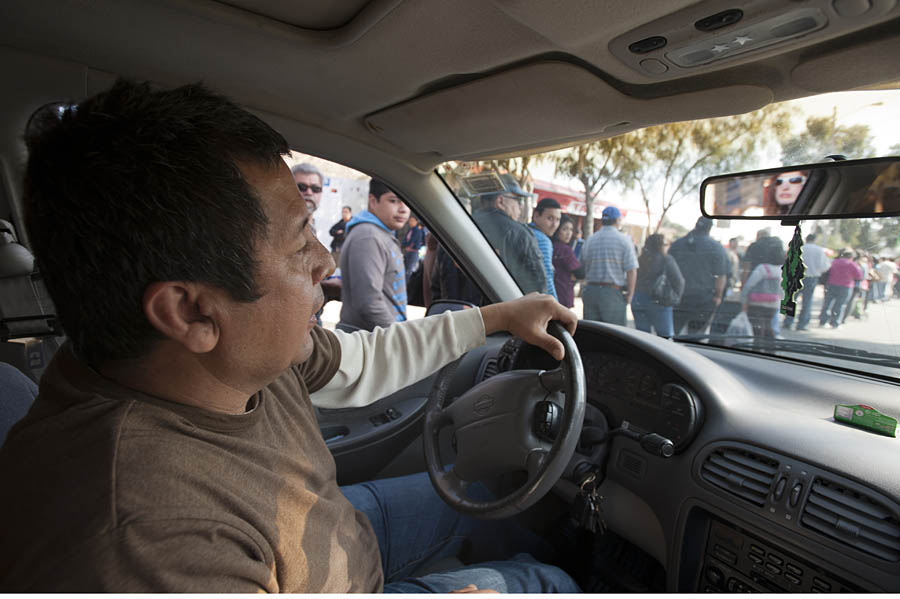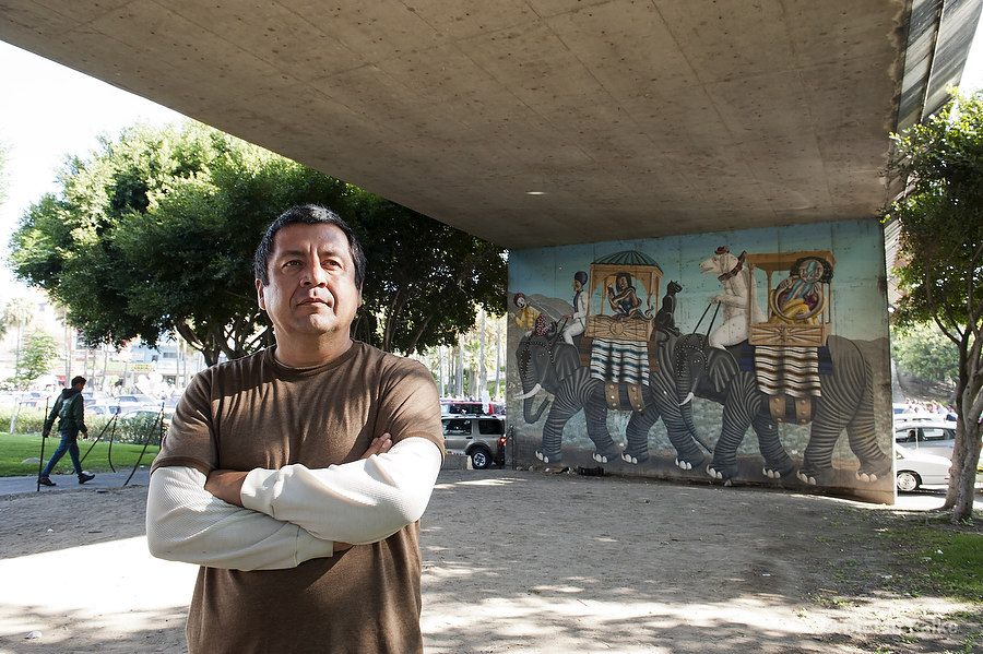 Oscar Ortega, sculptor, in Tijuana, March 2012.. Ortega used to paint huge murals under Tijuana’s bridges, now one of his large sculptures graces the Tijuana Border Crossing (last 2 images) and his work can be seen in many other locations along the border.