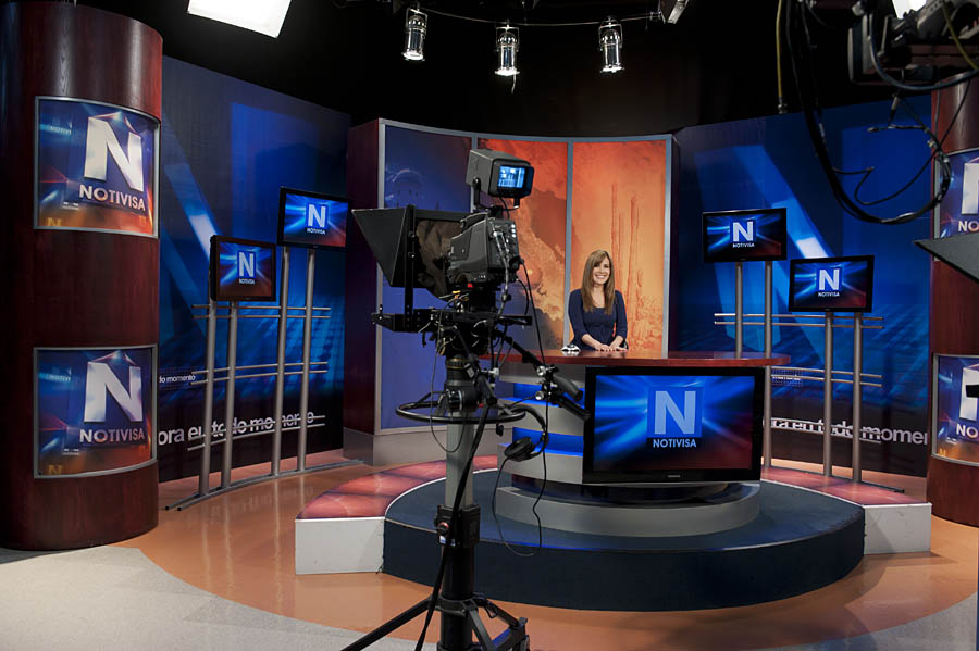 Karina Muñoz, TV moderator at channel 12 (with her camera man Andres Serrano below) at the Televisa TV building above Tijuana. Karina is a tireless cultural promoter for Tijuana and its artists.
