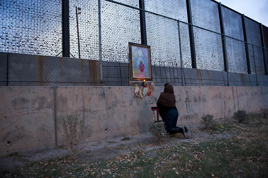 Artist Erica Marin installed her work ” Mis Rezos” at the border fence in El Paso. She is a member of Puro Borde, a cross border group of artists in El Paso, USA, and Ciudad Juarez, Mexico. http://www.facebook.com/puro.borde