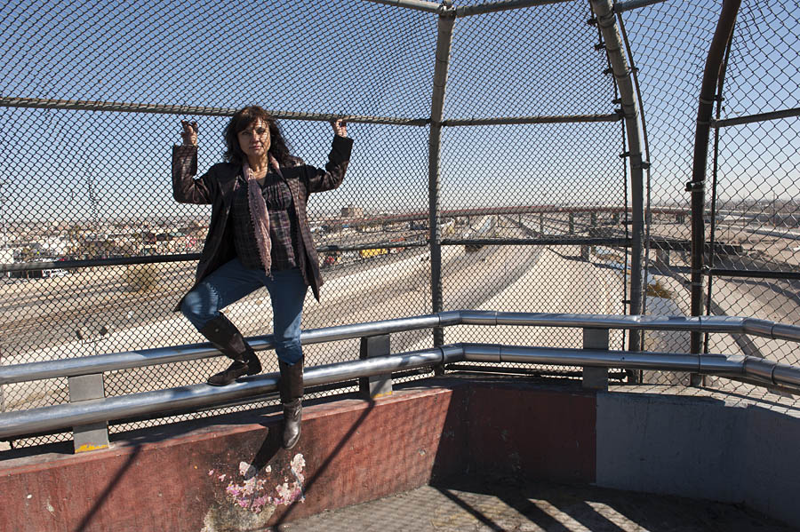 Theater director and actress Perla de la Rosa on the International Bridge between El Paso and Ciudad Juarez and at Centro Cultural Paso del Norte in Ciudad Juarez. Perla de la Rosa is one of the most outspoken women in Juarez and she often gets invited to perform her shows in Europe.