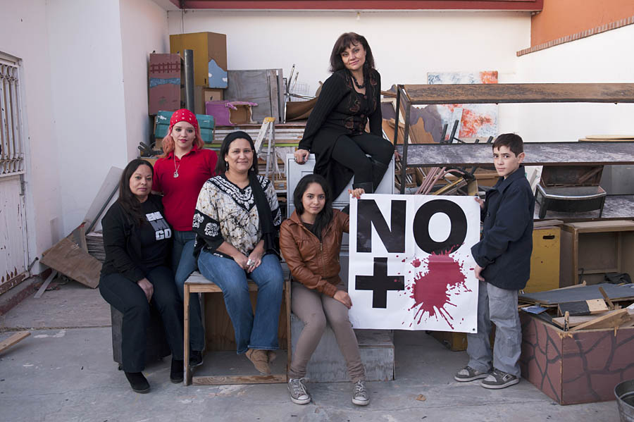 Below: Five strong women and one grandson, from left to right: Guadelupe Balderrama, Dinorah Goche, Guadalupe Da La Mora, Claudia Rivera, Perla de la Rosa and Emiliano Molina, a theater group at Telon de Arena in Ciudad Juarez, Mexico.