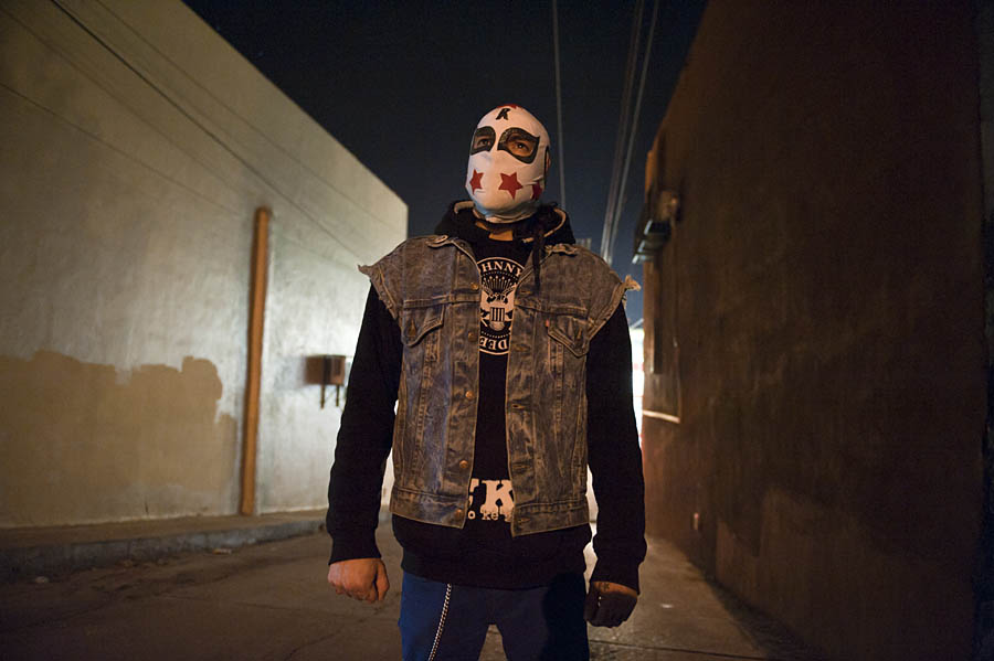 Musician Carlos Velazquez, a member of the punk band Tripa Revancha in Nogales, Mexico. The band usually wears suits and wrestling masks on stage.