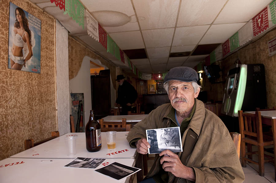 Eliseo Gaxiola Aldama Photographer Eliseo Gaxiola Aldama in front of his ‘office’, the cantina Dos Amigos in Nogales, Mexico. (at table second last image left to right: videographer Tino Verela, Guadalupe Serrano Quiñonez and Luis Diego Amaya Taddei (Taller Yonke) Share this: Click to share on X (Opens in new window) X Click to share on Facebook (Opens in new window) Facebook Click to share on Pinterest (Opens in new window) Pinterest Click to share on LinkedIn (Opens in new window) LinkedIn Click to share on Tumblr (Opens in new window) Tumblr More Click to email a link to a friend (Opens in new window) Email Click to print (Opens in new window) Print Click to share on Reddit (Opens in new window) Reddit Like Loading... Related