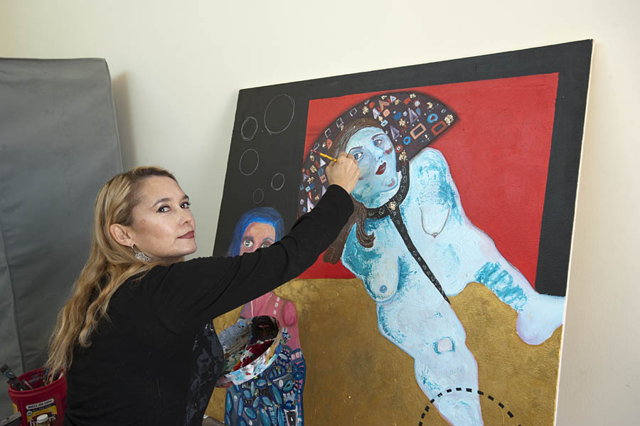 Painter Jaqueline Barajas in her house and studio in Mexicali, Mexico.